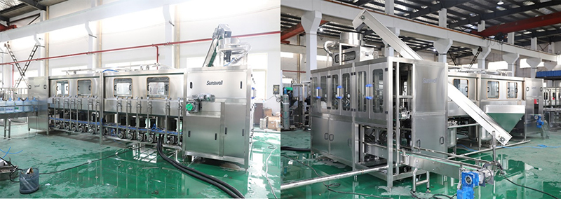 The order includes a 20000BPH (500ml) blower/filler/capper Combiblock and auxiliary equipment, high and low pressure air compressors, conveying system, hot melt glue OPP labeling machine and automatic film shrink wrapping machine for printed film. At the same time, the customer also ordered a 900BPH (5gallon) drinking water bottling line, including automatic de-capper, high-pressure barrel washing machine, automatic outside barrel brushing machine , barrel washing/filling/capping monoblock, conveying system,fully automatic tamp seal sleeve labeling and shrinking machine.