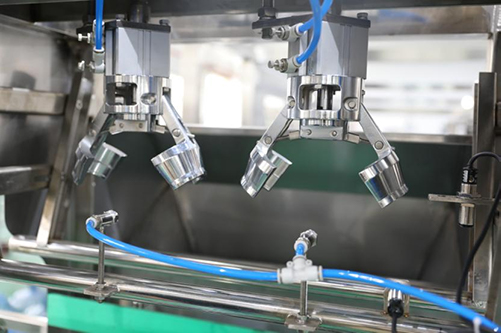 ●Cap pulling device adopt pneumatic adjustment from AIRTAC, which solves the problems of tolerance of bottle height bottle mouth, and its capacity is adjustable.