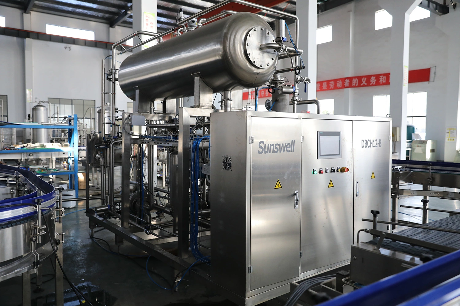 Our mixer is an advanced online automatic mass flow mixer, can automatically detect and accurately adjust, it reduce precision error from traditional manual deployment and save the deployment system cost, especially for high speed continuous production line, and can be combined with the associated equipment to produce different kinds of product, such as carbonated beverage mixing, etc. It's most evident advantage is that is use normal temperature filling 12~15C, rather than regular used 4C degree filling. This helps save electricity used in chiller and warmer.