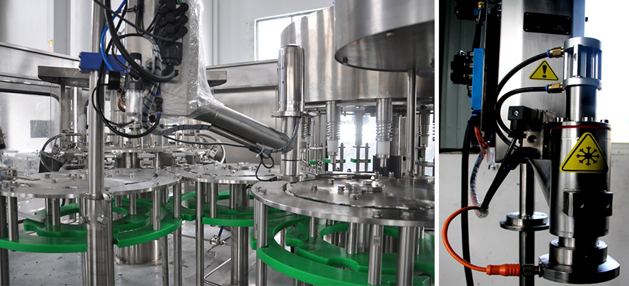 Sunswell Liquid Nitrogen Dosing Machine is the latest liquid nitrogen dosing machine in China which uses the similar machines abroad for reference. It could control dosing volume accurately, no-container-no-liquid dosing, small size, easy installation and could coordinate with any filling production line. Control system comprises Siemens PLC and touch screen, all pipes adopt vacuum heat-insulated pipes which could ensure minimum consumption of liquid nitrogen and no frosting operation condition.