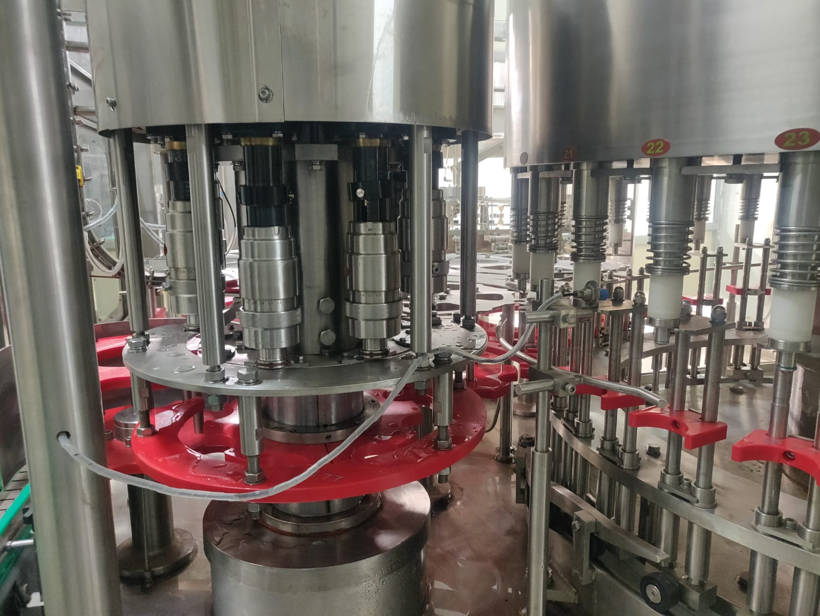 4) Start the machine at low speed, check the performance of starting, braking, emergency stop and speed regulation. Then input an empty bottle at low speed, check whether it can pass through the bottle feeding screw, guide rod and star wheel, etc., and whether each control block can respond sensitively. Check whether the cap dropping is unobstructed and smooth, and whether the capping is tight. After that, adjust the values of the instruments on the liquid and gas control cabinet according to the filling requirements.