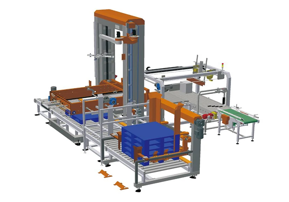 Sunswell palletizer is used for stacking cases onto pallet or tray for convenience of forklift to move to warehouse, machine adopts PLC + touch screen control with easy operation and reduce labor intensity greatly, which features high speed, stable performance and space saving.