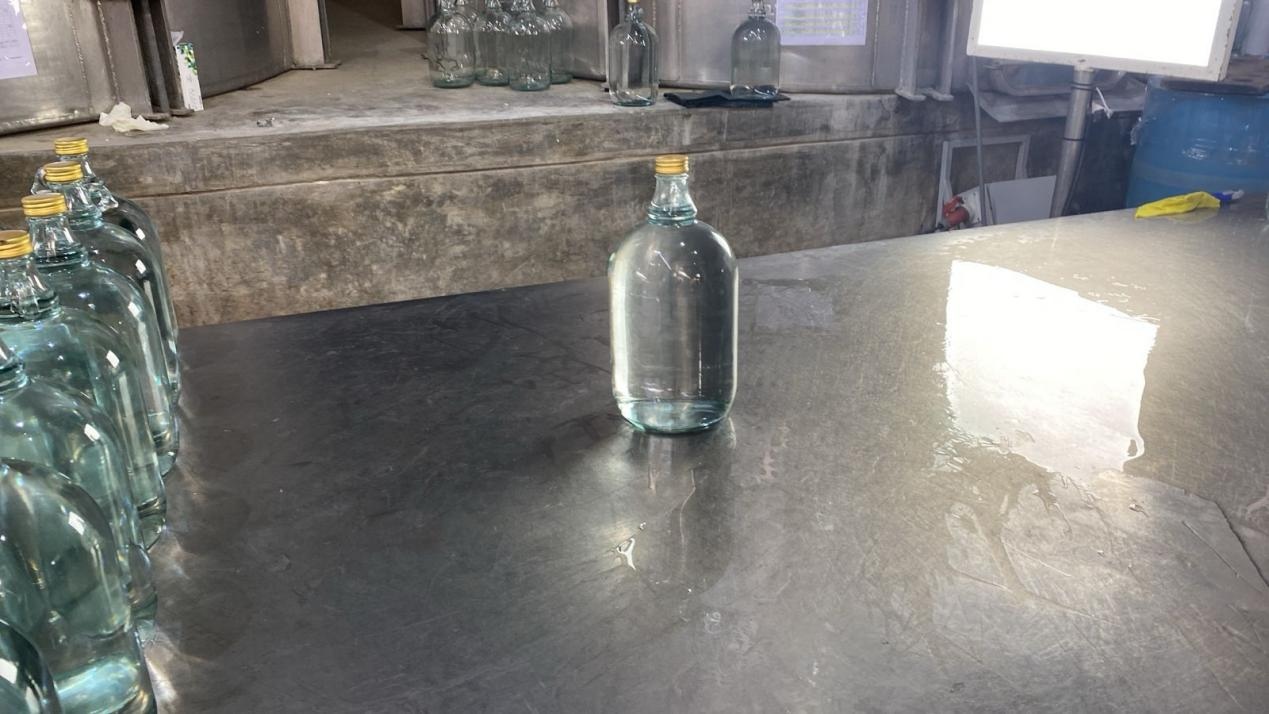 In addition, the customer also asked us to customise a filling machine according to the samples of 2L, 3L, 4L glass bottles he sent.