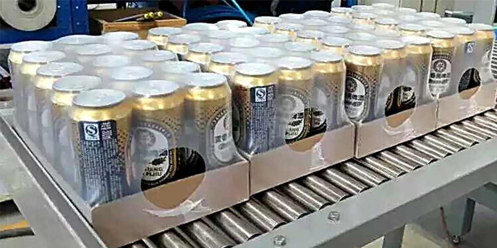 Tray Packer suit for beverage, drinking water,beer wine and infusion bottle ect. packaging,which can be packed without tray and with a firm and beautiful appearance.