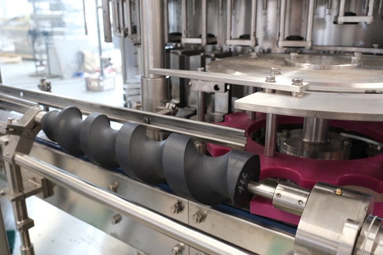 • Driving motor is frequency inverted to synchronize with the filling line to prevent bottles from falling.