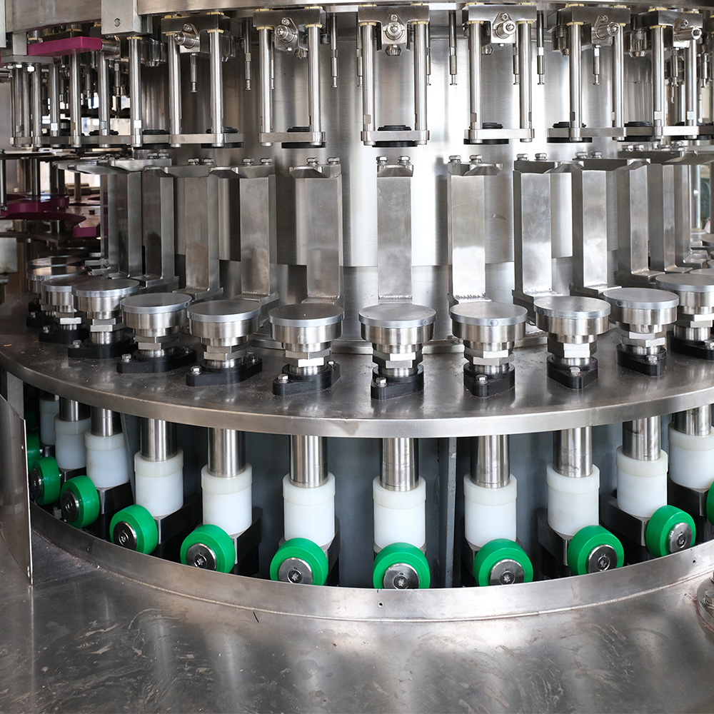 4-in-1 filling monoblock, combined with rinsing, filling, screw capping and ROPP capping. It is innovated and designed in the requirement of isobaric filling for carbonated drinks, beer, sparkling water, etc. The machine suits both glass and PET bottles with ROPP cap and screw cap.