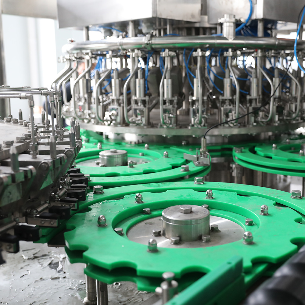 It is suitable for filling and seaming non-carbonated liquid such as water, juice, functional beverage, etc. It is equipped the advanced device, electrical equipment, and pneumatic control technology. It has the characteristics of filling reposefully, high speed, liquid level control, seaming reliably, frequency conversion timing, less material loss. It is the preferred equipment for beverage plants.