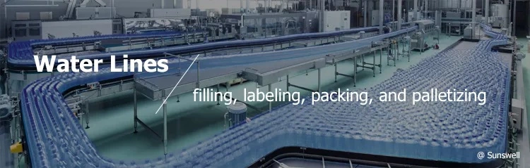 With over 10 years of experience in designing and implementing customized complete PET and glass line solutions for water, sunswell can help you reach your production targets from water treatment,blowing, filling, labeling, packing, and palletizing up to and including inspection and complete sanitizing.