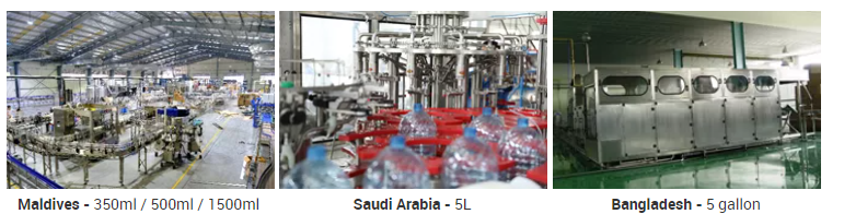 Some complete water bottling line projects delivered include: