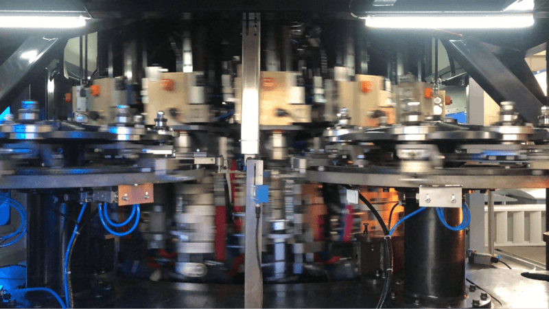 3-in-1 combiblock, composed of blowing, ultra clean or hot filling and capping. It is innovated and designed in the requirement of carbonated soft drinks and carbonated water. The combiblock avoids friction of bottles during air conveying.