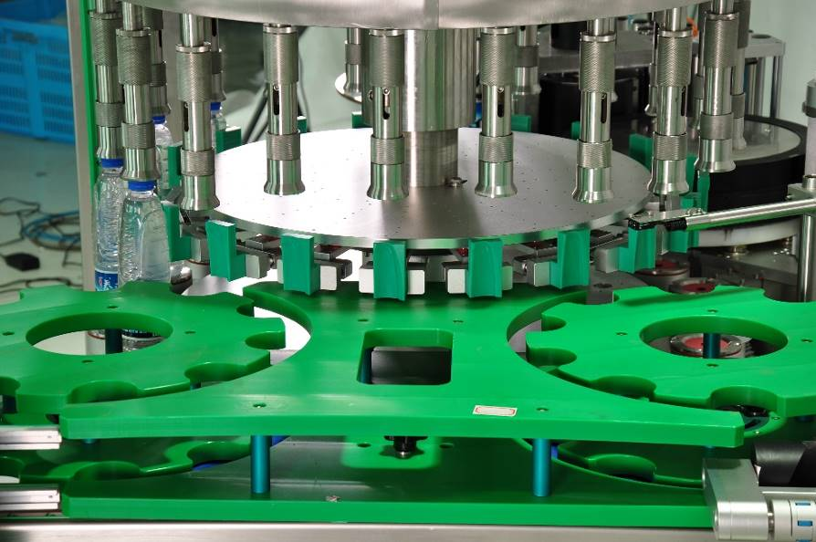 Mechanical pre-location , using the camwheel institution to planish the bottle for label positioning |
